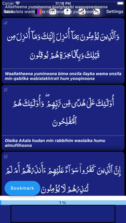 • Holy Quran in two version - Simplified and Detailed Arabic, English Transliteration, Hindi and Urdu Translation.