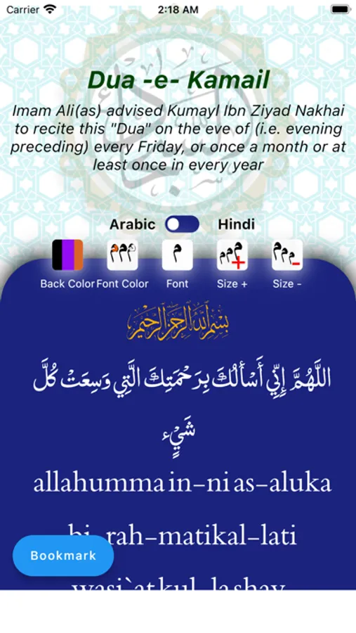 Dua -e- Kumayl in Arabic, English and Hindi Transliteration.