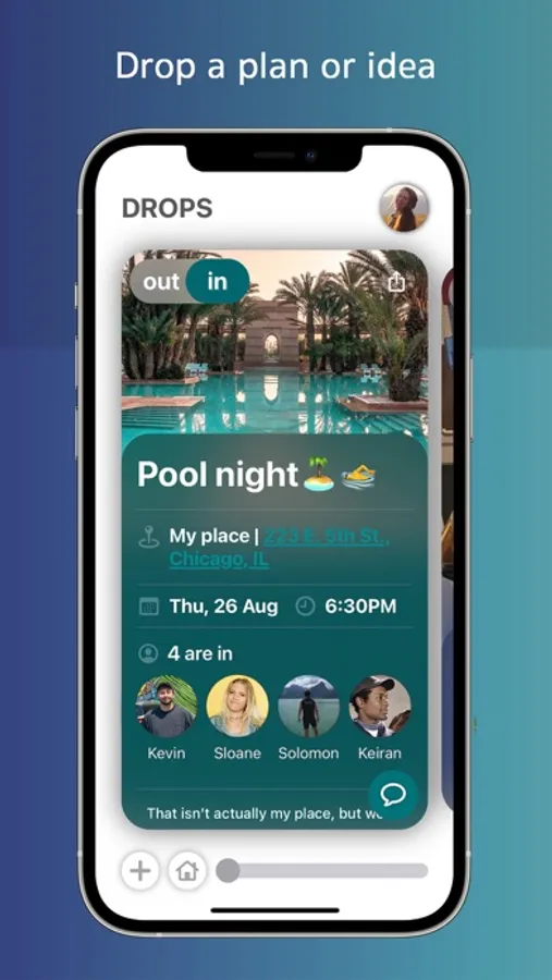 say goodbye to group chats with 15 phone numbers you don’t recognize. your plans get their own dynamic chat with names and icons for everyone who’s in. and the best part? you won’t get any message notifications unless you say you’re “in” for the plans