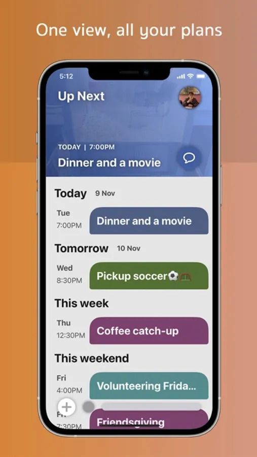 as you make and get invited to plans, they’re organized in your feed so you can see what’s coming next