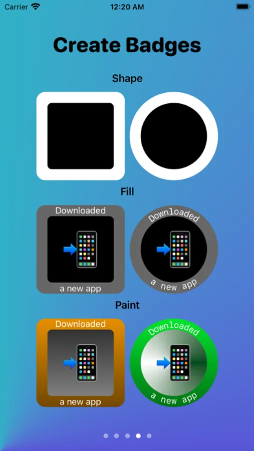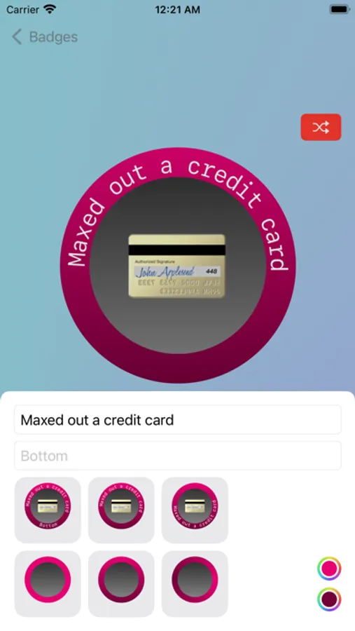 Design your own badges by styling the main content, top and bottom text, and choosing color fill patterns for the border and center.