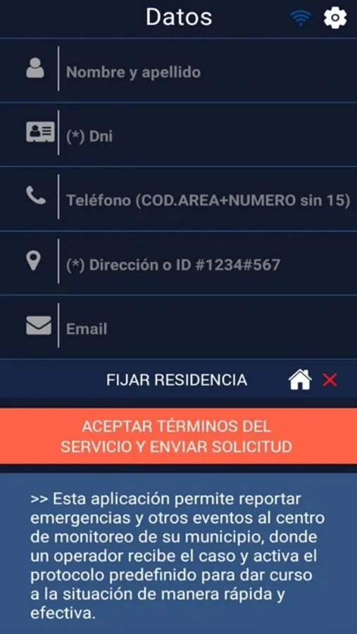 Aplicación de Alerta Ezeiza, sirve para enviar alertas geoposicionadas de fuego, pánico, y emergencias a centros de monitoreo. Solicíte habilitación a su centro de monitoreo local.