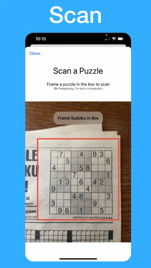 Scan in any sudoku you see in real life. Scan from a newspaper or from another screen using your phones camera.