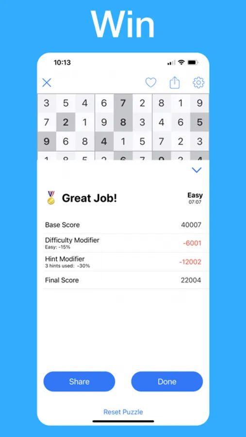 Share any sudoku with a friend via an iMessage and see if they can beat your score.