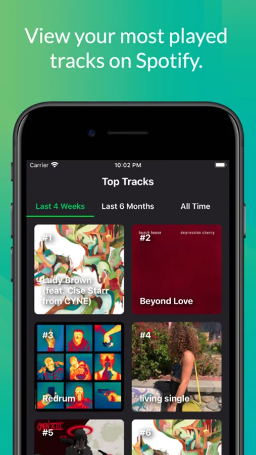 - Most played songs in the past 4 weeks