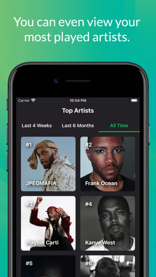 - Most played artists in the past 4 weeks