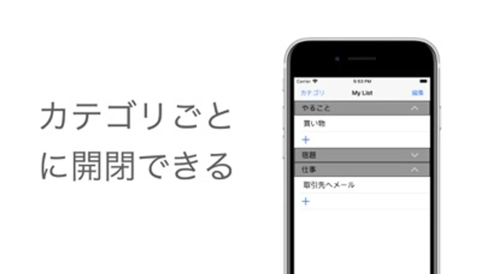 課題、仕事、家事、趣味などのタスクをカテゴリで分けて管理することができます。カテゴリは自由に開閉できるので自分好みに見やすくすることもできます。
