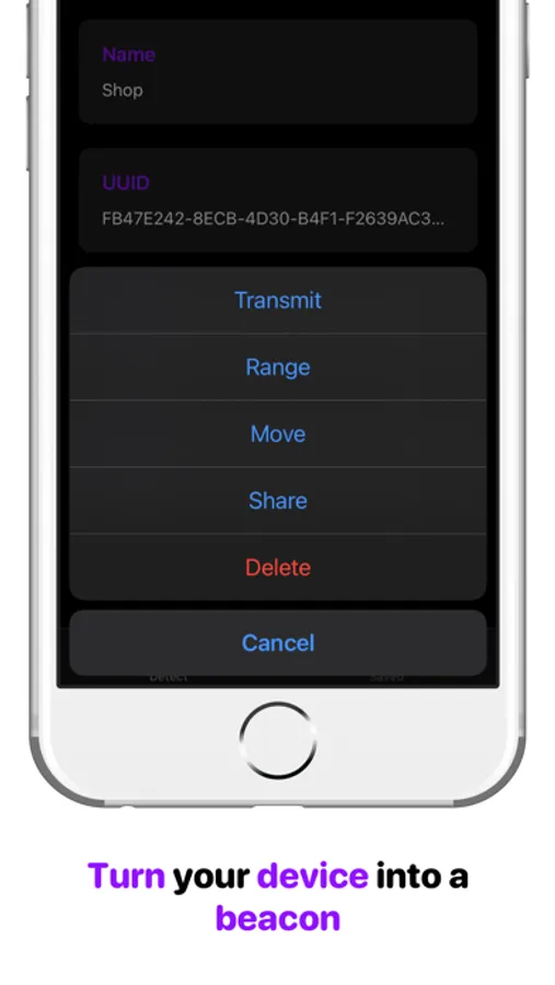 Beacon Buddy allows you to simulate any iBeacon by entering the UUID, major and minor. You can also name and sort your iBeacon configurations into folders to help you be organized.