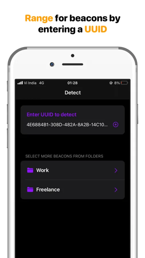 You can also range and monitor for iBeacons with any UUID or a specific iBeacon from your stored configurations. The best part is that you can save ranged beacon configurations into your folders for future use.