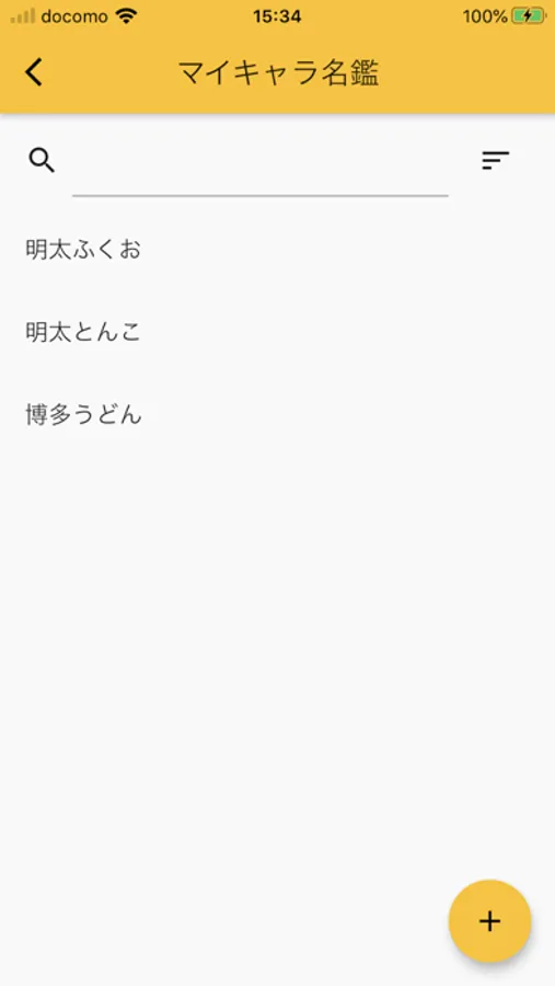 名前やタグで検索したり、名前順や年齢順に並べ替えることもできます。