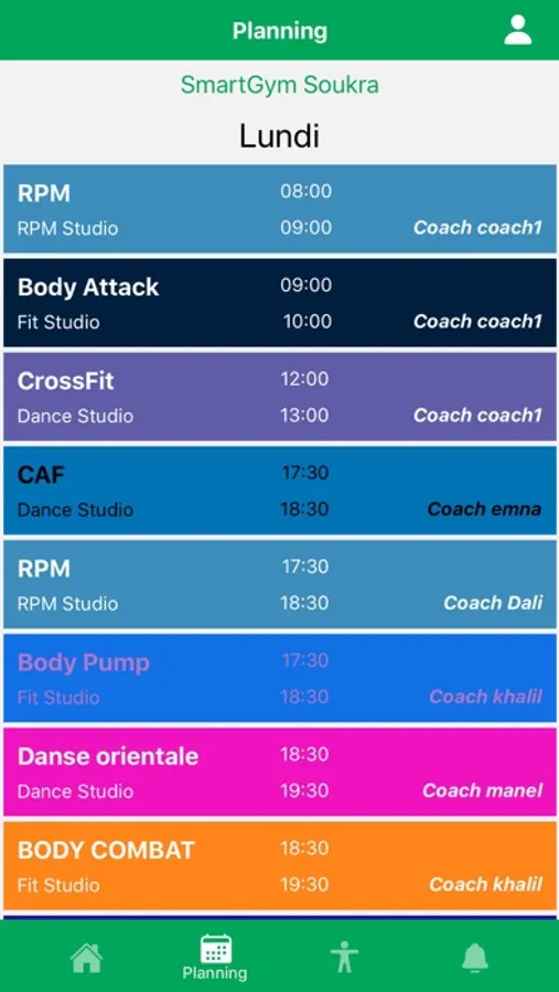 Les coachs du club ont accès à leurs plannig et peuvent voir les abonnés qui ont réservé.