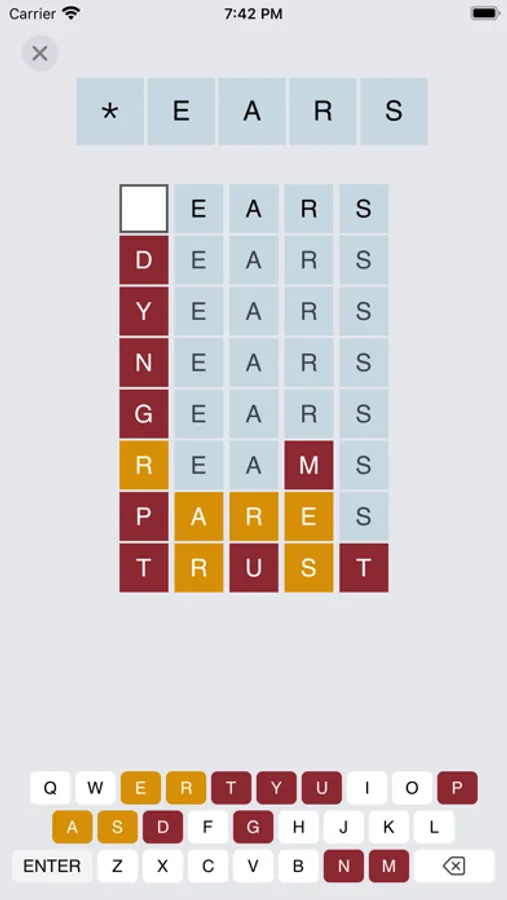 Guess the mystery word. Flex your vocabulary and exercise your powers of deduction. Use your wits, trial and error and a logical process of elimination to identify what partially hidden word you're looking at, using as few guesses as possible. W*RDS is a puzzle inspired by the classic game Mastermind, in much the same vein as the TV show Lingo and the New York Times' daily Wordle challenge. You can up the ante by increasing the length of the word to be guessed and play as often as you like, in English, French or Italian. Go it alone or challenge a friend - it's your call.