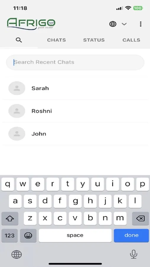 AfrigoApp Messenger is a chatting app with groups and voice messages. The user can send pictures,audio,video,can create groups as well.