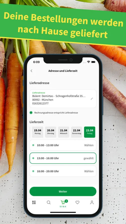 - Überprüfung durch Deine PLZ, ob einen Lieferservice möglich ist