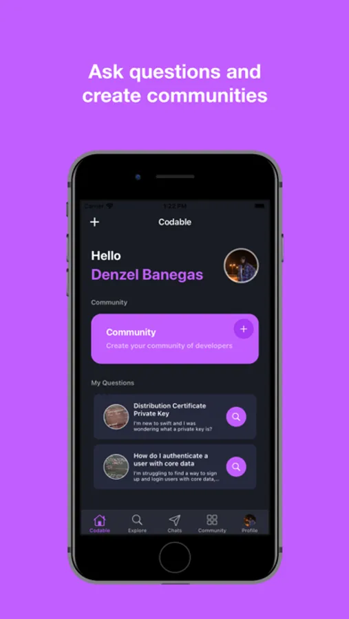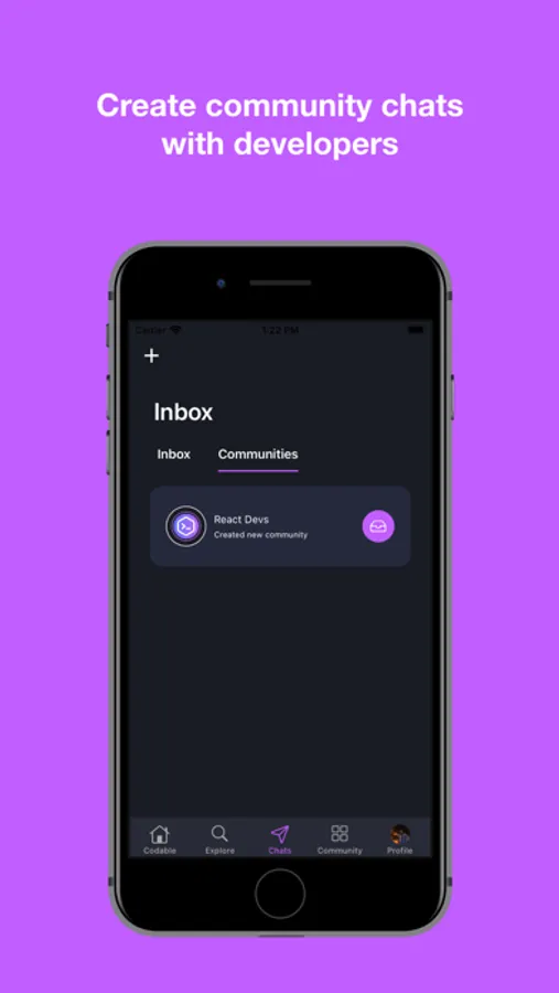 Community - Create communities with developers from around the world! Users can create public and private chats with others to collaborate and engage in conversations with friends, and followers.
