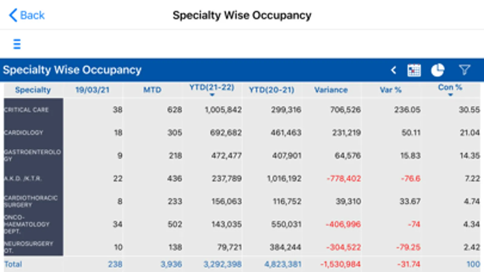 An all-in-one compact and powerful module for department-wise revenues and expenditure, admissions, occupancy, surgeries, material inventory and store management with exhaustive MIS.