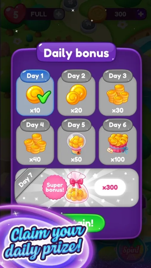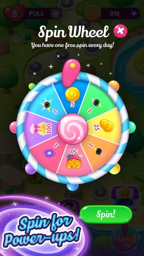 Check back every single day for bonus rewards like coins and boosters and spin the Daily Booster Wheel every 5 minutes for an awesome prize!