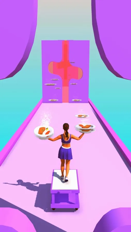 Collect all the plates and distribute them to the customers. Swipe up and down to dodge obstacles.
