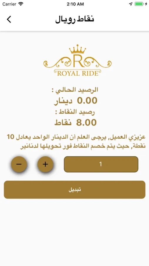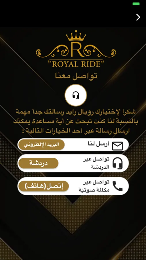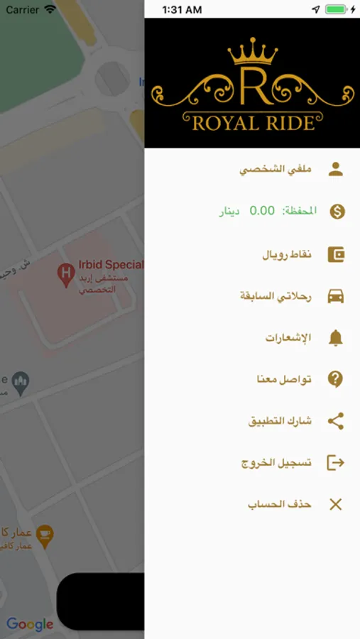 Use your smartphone to order a ride, get picked up by a nearby driver, and enjoy a low-cost , joyful and fast trip to your destination.Why choose Royal Ride ?Get a comfortable, low-cost ride.Fast arrival times, 24/7.Hours reservations.Customers are able to know the price of the ride before making the order.Easily request a ride with the Royal Ride:1. Open the app and set your destination; you can skip this step.2. Press Yalla to request a driver to pick you up.3. Check your captain's location on map.4. Have fun during your trip.5. Rate your trip and pay .Royal Ride will be available in middle east ASAP. Royal Ride’s mission is to bring distinguished , reliable and affordable transportation to our distinguished customers. Moreover, We help hundreds of drivers support their families. The next time you need a ride, take Royal Ride!
