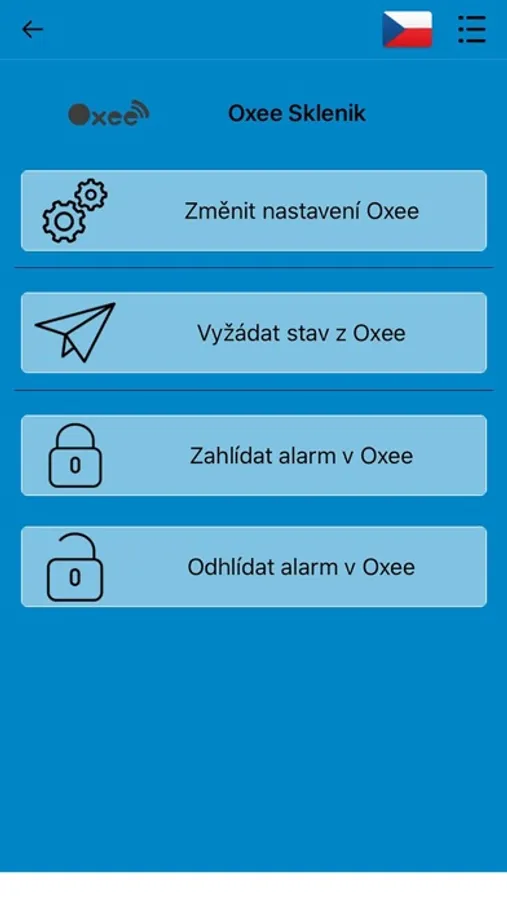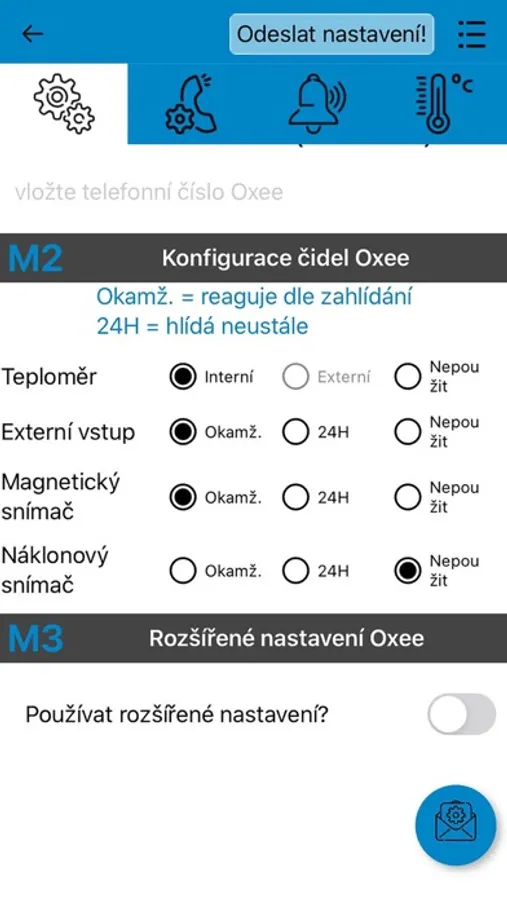• Definice vlastních poplachových SMS, které Oxee bude posílat při: