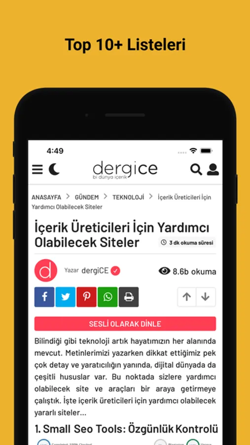 Her gün fırsat bulduğunuz an yeni şeyler öğrenin! İçerikleri gözlerinizi yormadan gece & gündüz modunda okuyabilir, üye olmadan like-dislike yapabilir, aynı zamanda üye olarak kolayca içerikler hakkında yorumda bulunabilirsiniz. İsterseniz yazıları sesli olarak da dinleyebilirsiniz. Beğendiğiniz içerikleri whatsapp dahil, facebook, twitter gibi bir çok sosyal medya hesabınızdan tek tıkla paylaşabilirsiniz.