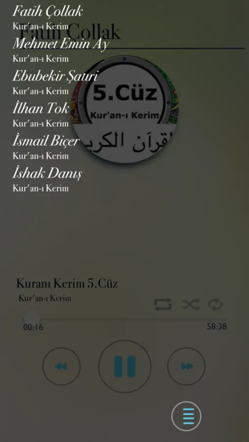 Ebubekir şatıri ile kuranı kerim cüz 5.