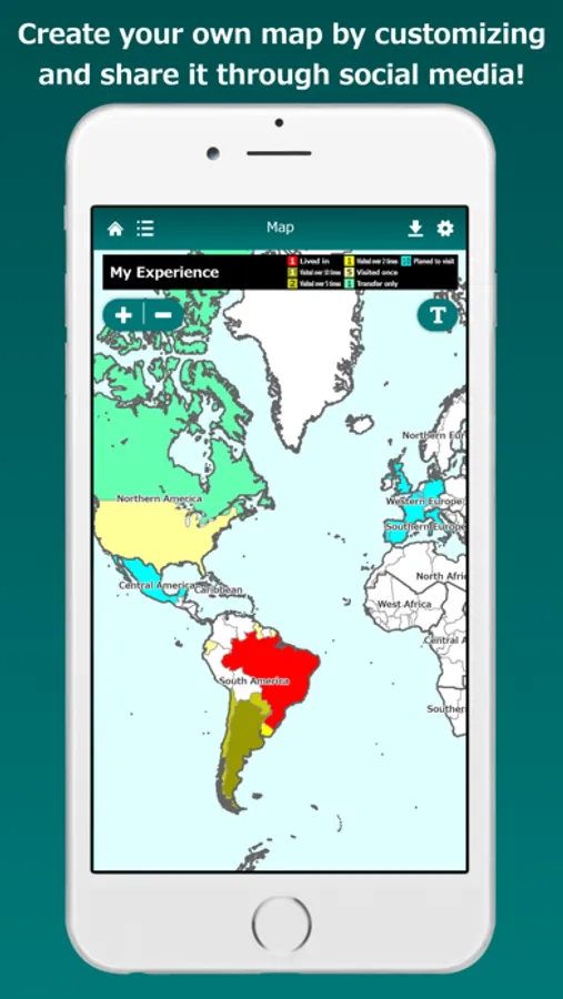 This app shows the countries and regions you have visited on the world map! By displaying the labels, you can easily locate countries and regions on the map. The map can be zoomed in and out.