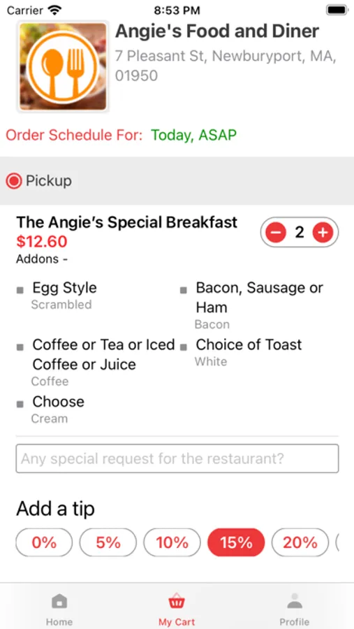 2. Angie's Food is going digital now and has it's own online ordering app. If you want to order delicious food from us, just download our app and place order in 3 quick steps. Build your order just the way you like it or choose one of our combo from the menu. Add items from the rest of our robust menu. And with the order Tracker ® you can follow your order from the moment you place it until it’s out for delivery, carryout or pickup.