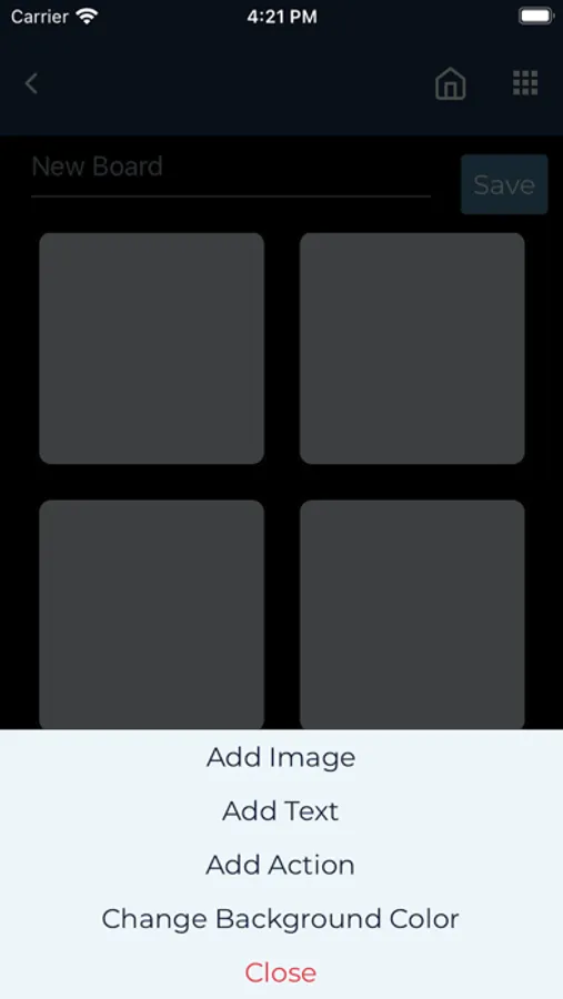 The app provides features to create boards using images and texts. Actions, such as text to speech and navigation to other boards can be configured on choice selection to provide immediate feedback and continued communication opportunity.