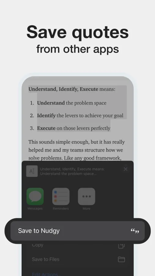 - Quickly save quotes from other apps