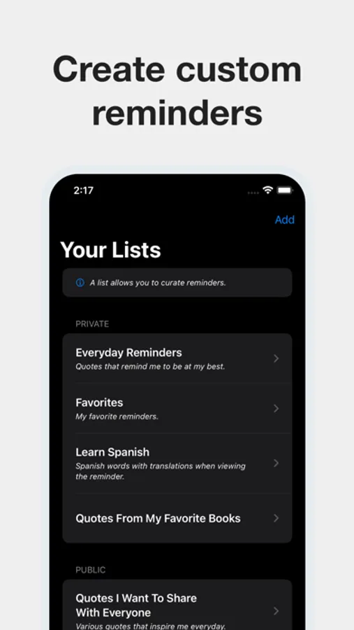 - Share your reminders for others to use