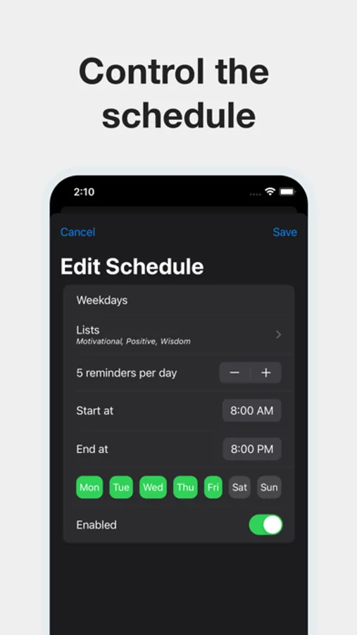 - Receive inspirational reminders via notifications