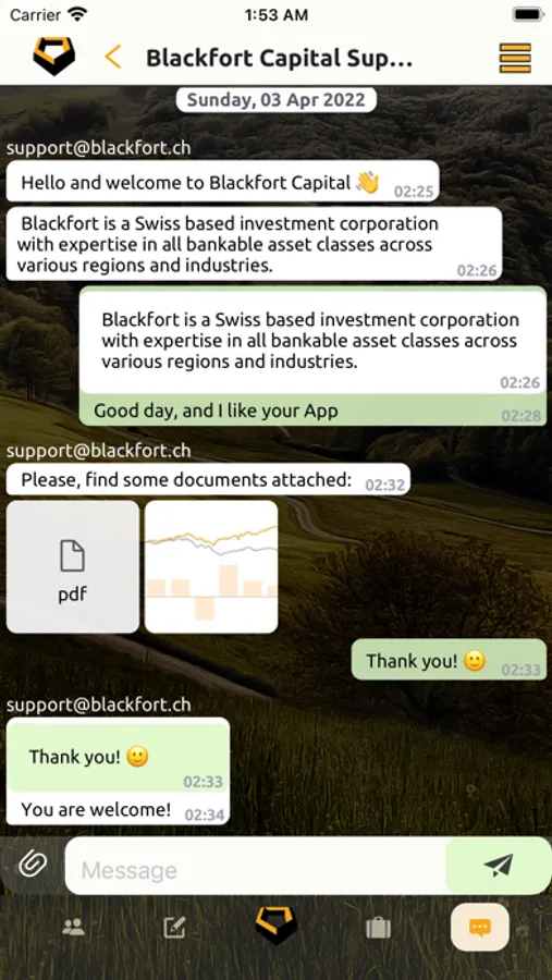Direct chat functionality, enabling secure and efficient communication with our team. You can ask questions regarding your portfolio bundle and receive prompt responses within a dedicated and confidential channel.