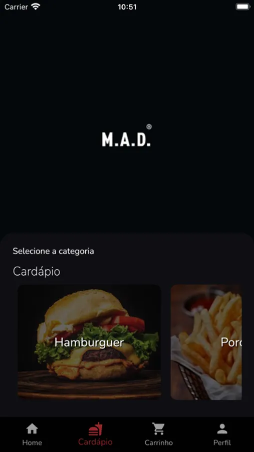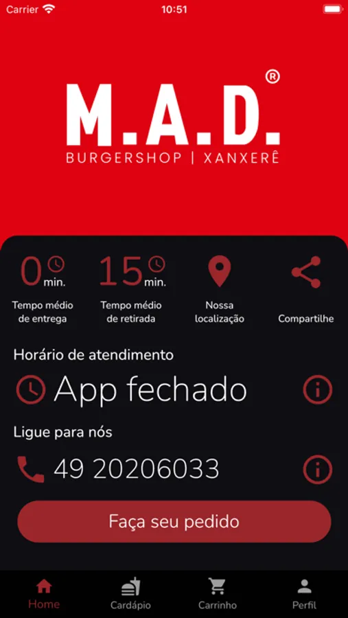 Aplicativo de delivery do M.A.D. Burguer Xanxerê.