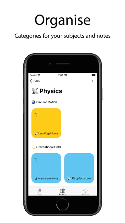 - Organise your subjects and notes into different categories, labeled in different colours, such as through the difficulty level of the subject or its chapters.