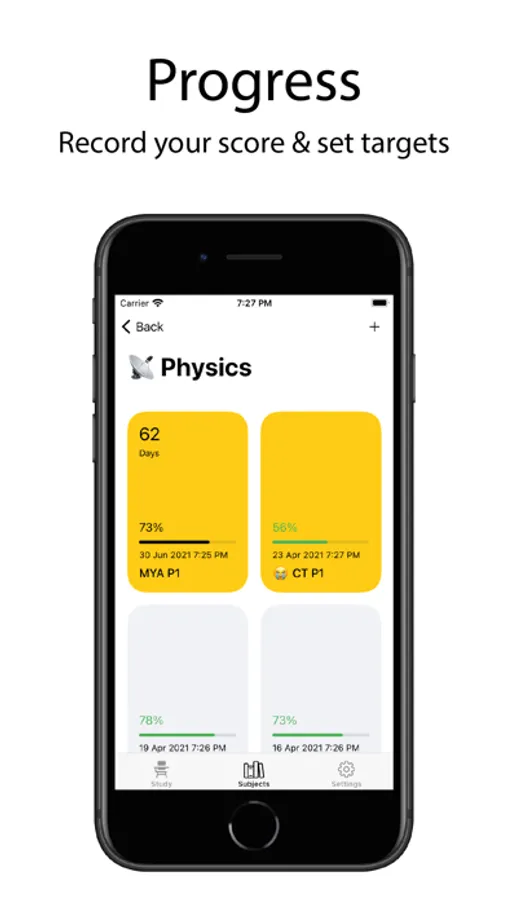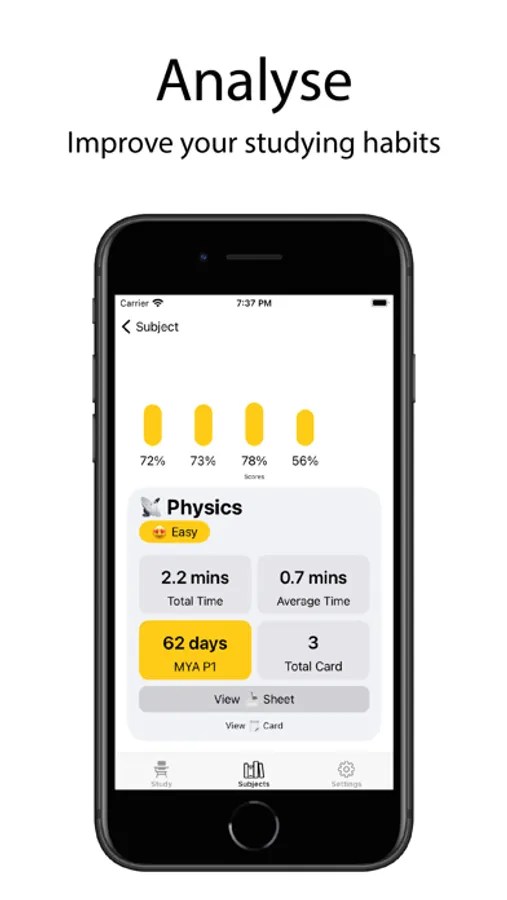 - Analyse the trend in your scores, the amount of time you studied and the average time you study through the subject summary.