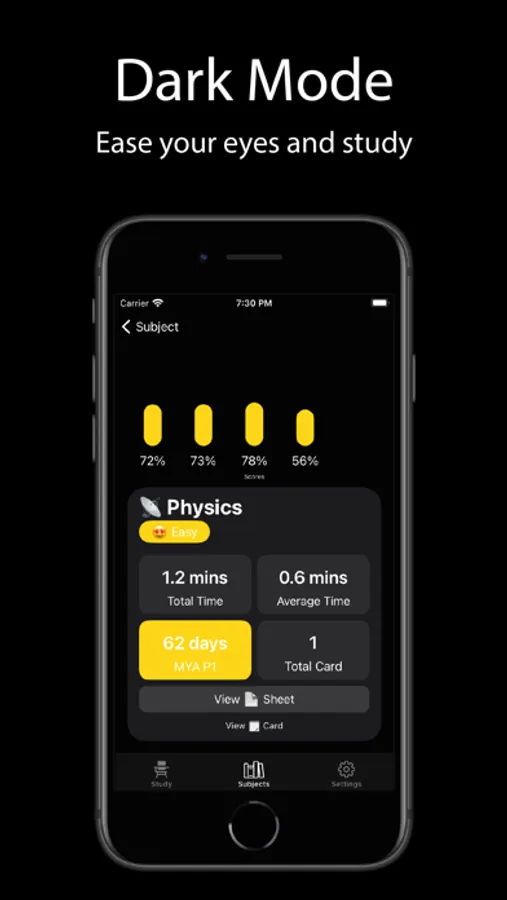 Study better by reviewing your notes, recording your score and analysing your studying statistics.