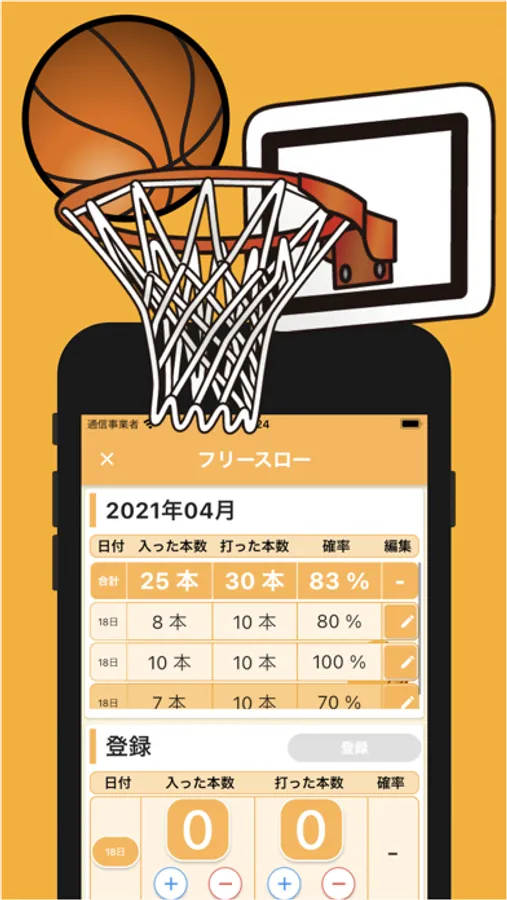 日々のシューティングを記録するためのバスケットマン専用のアプリです。