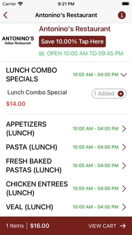 1. Get the Antonino’s Online Ordering app and conveniently order from anywhere on your iPhone.