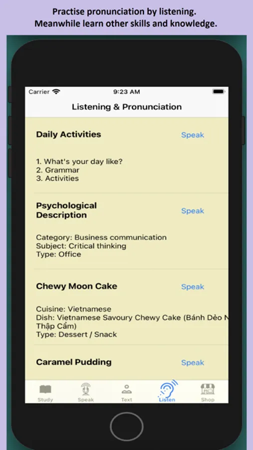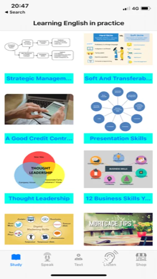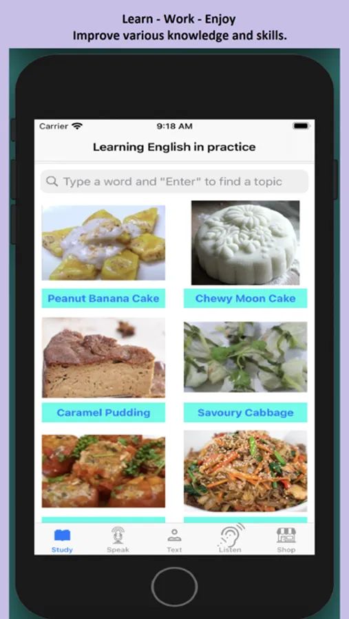 Improve English by Learn, Work and Shop.