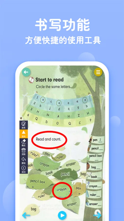 【4】画笔功能,全屏涂鸦让学习更加的有趣让学习更加高效率。完全同步最新发行教材,绝无缺漏页现象。