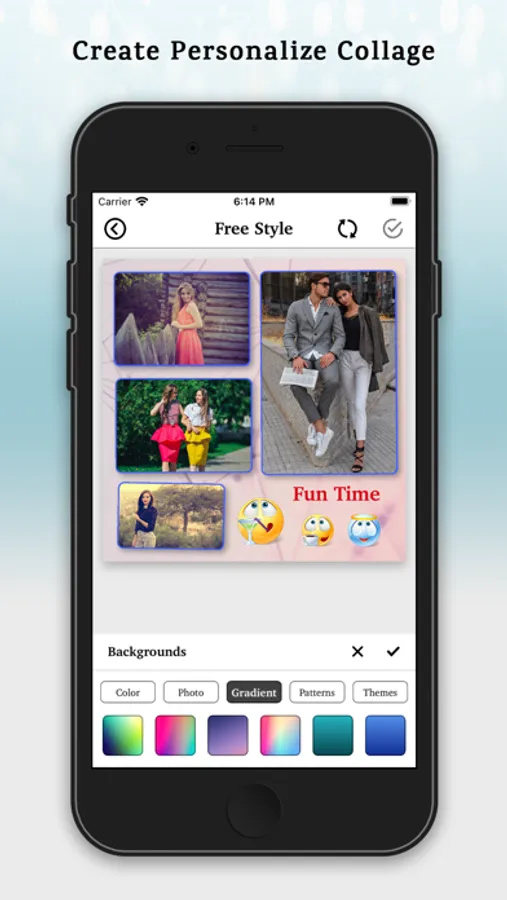 - Add photo background with color, gradient, pattern, theme and blur photo