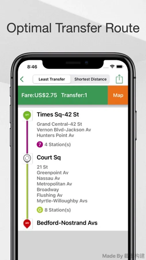 Choose departure and arrival, you can get a variety of transfer plans. Contains: route, time, fare, distance.