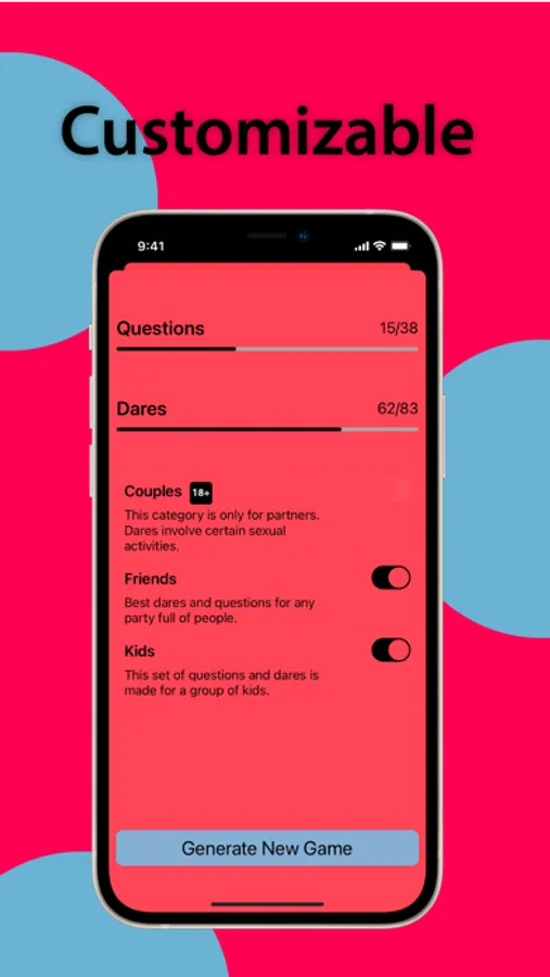 This app has a database of categories and questions stored on the internet and we keep adding new ones regularly, so you can update them and always get the newest questions.