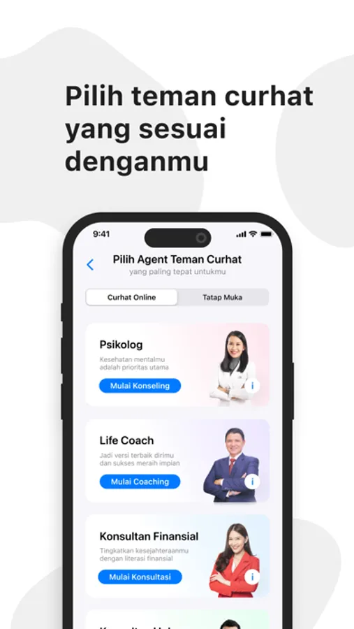 Teman Curhat ID memiliki pilihan konselor dengan latar belakang life coach, psikolog, dan teman (helper) sebaya.