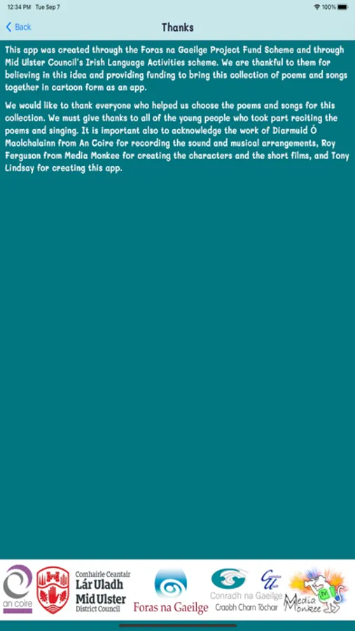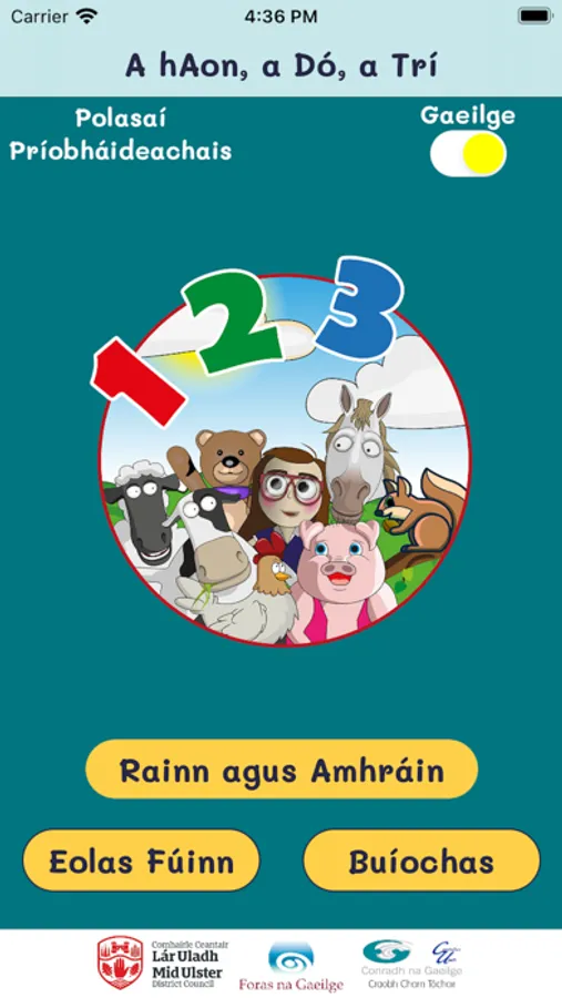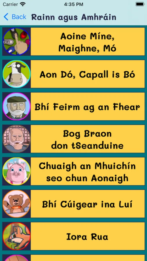 A simple animated nursery rhymes and songs app through the medium of Irish.