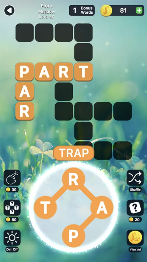 ◆ Drag your finger over the letters to create a word. Connect and cross words in the grid to complete the puzzle.