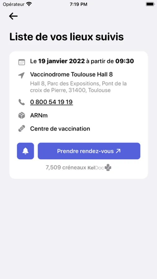 Vous pouvez vous abonner à un ou plusieurs centres de vaccination. Vous recevrez alors une notification si ce centre a des créneaux disponibles.