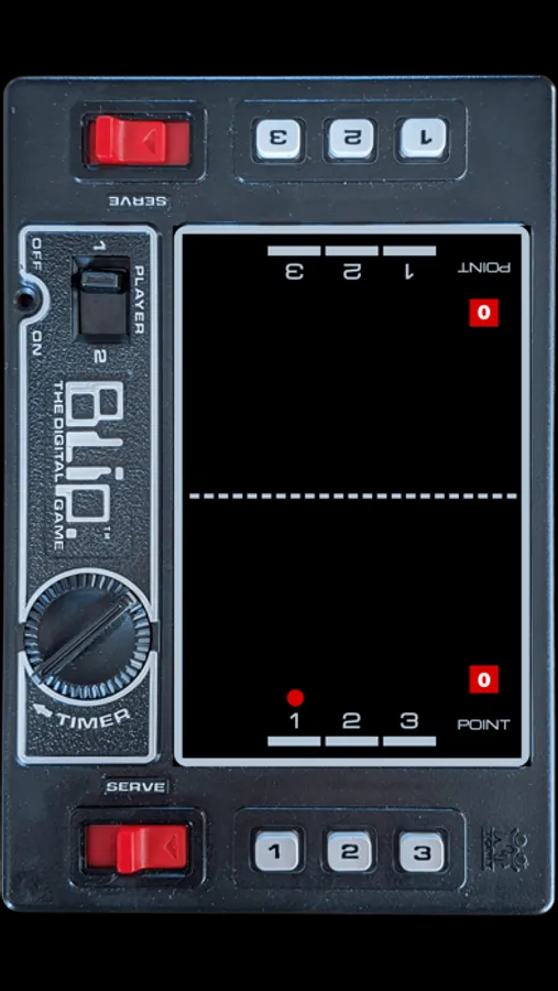 Blip™ was a portable Pong-style game made in 1977 - the year handheld video games were just catching on. Although it was branded "The Digital Game", the action was purely mechanical, powered by a wind-up timer.