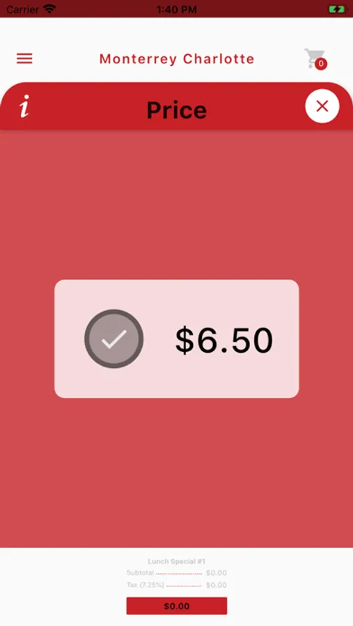Monterrey Charlotte an app to view the full menu and add your choices to the cart